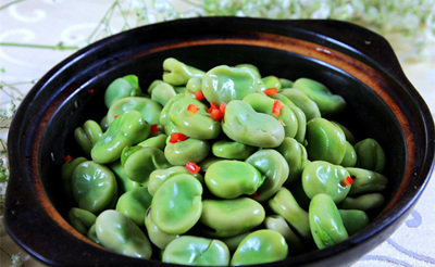 1.蠶豆的食用方法很多,可煮、炒、油炸,也可浸泡后剝?nèi)シN皮作炒菜或湯。蠶豆性滯,不可生吃,應(yīng)將生蠶豆多次浸泡或焯水后再進(jìn)行烹制。不可多吃,以防脹肚傷脾胃。