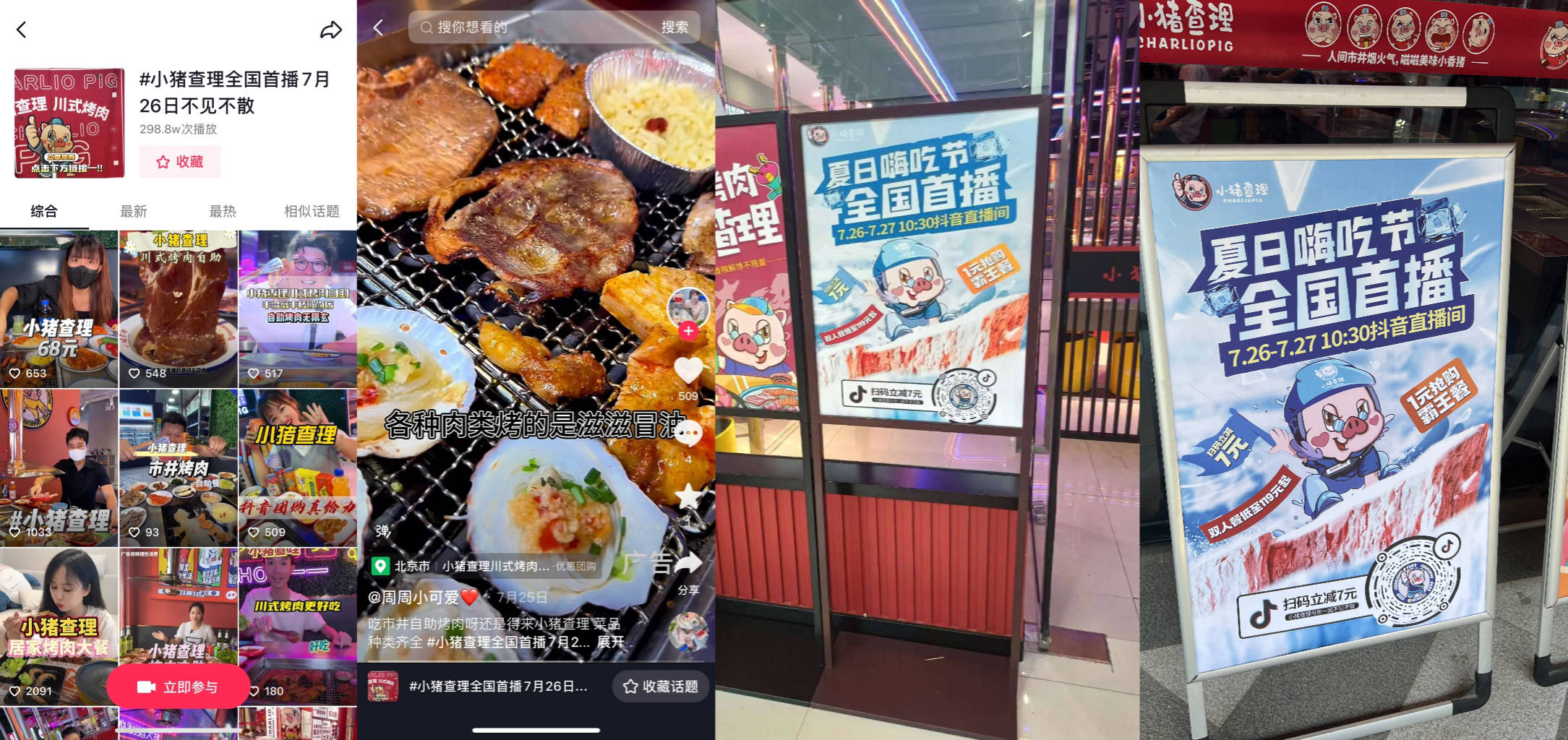 “人間市井煙火氣,有肉有面好開心” 。川式烤肉品牌“小豬查理”參與抖音生活服務餐飲行業(yè)“夏日嗨吃節(jié)”活動,并于7月26日、27日攜手多位美食達人,在抖音開展了一場“煙火味”十足的直播活動,兩天時間,“小豬查理”抖音直播的銷售額突破800萬!