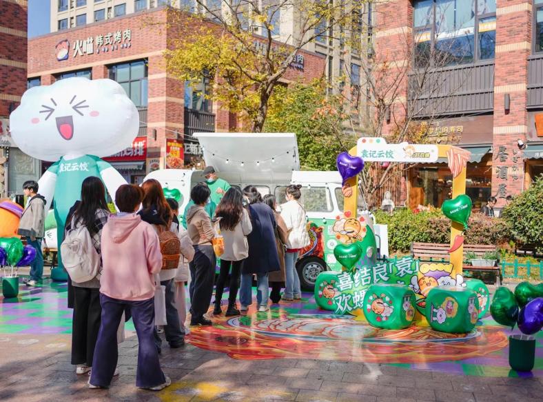12月8日至12月10日,在杭州市下沙寶龍商場的戶外廣場,餐車快閃活動正在進行中。在現(xiàn)場,大家不僅可以和4米高的“顯眼包”袁寶氣模玩偶合影打卡,還可以免費試吃聯(lián)名新品“螺螄粉湯全家福餃子/云吞”“炫”到飽,參加現(xiàn)場CP活動,更有超多人氣聯(lián)名周邊瘋搶不停!活動現(xiàn)場首日,眾多粉絲和美食愛好者聞訊而來,其中還有不少粉絲是從周邊城市特意趕來?,F(xiàn)場氣氛火爆,試吃餐車前連續(xù)五小時大排長龍,大家紛紛感嘆:“一口鮮美云餃一口靈魂螺螄湯,完美融合的兩廣風味碰撞到嘴上,真香!”。