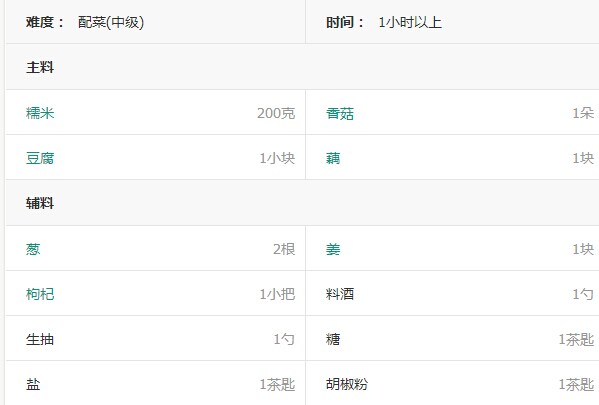 1. 糯米、香菇、蓮藕、豆腐、蔥姜等備料