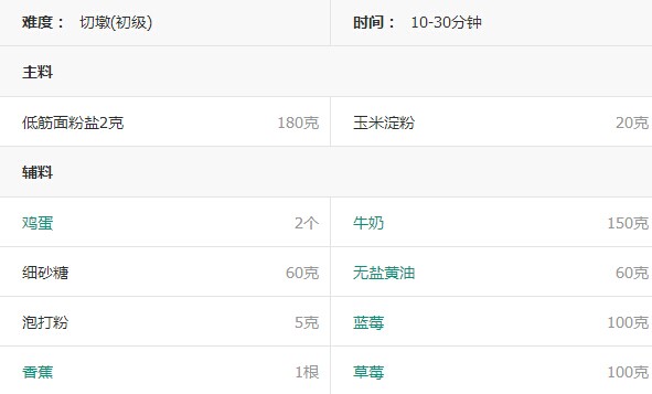 1. 準備食材配料:蛋糕粉【或低筋面粉】、玉米淀粉、雞蛋2個、細砂糖60克、牛奶150克、無鹽黃油60克、泡打粉3克、鹽2克。