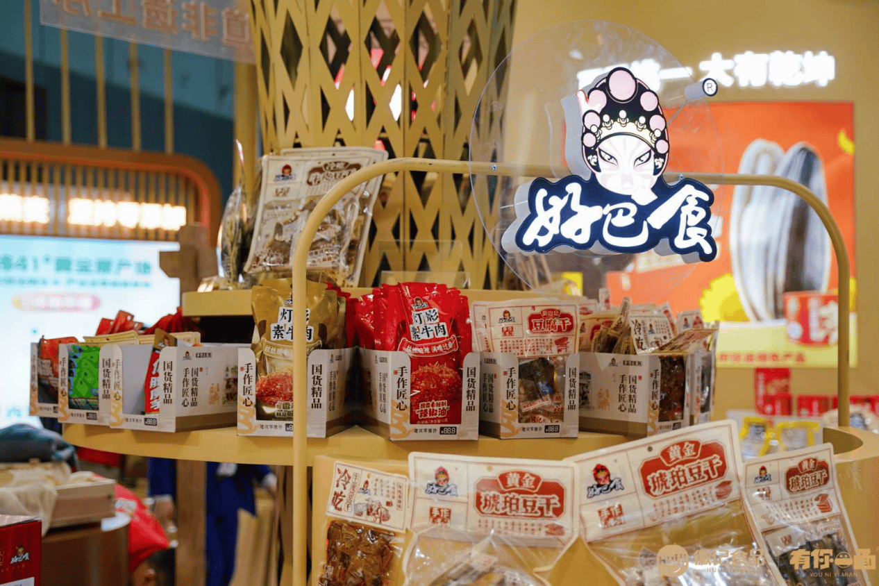 徽記食品和有你一面的展臺(tái)以“非遺傳承,國(guó)貨精品”為主題,將傳統(tǒng)文化與現(xiàn)代設(shè)計(jì)完美融合,吸引了眾多參觀者的目光。展臺(tái)整體設(shè)計(jì)分為兩個(gè)區(qū)域,分別展現(xiàn)了徽記食品和有你一面的品牌特色。