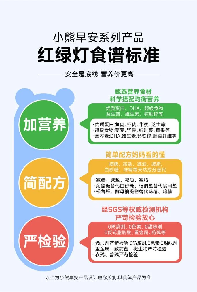 此外,叮叮懶人菜還推出了專(zhuān)注蛋白營(yíng)養(yǎng)早餐的品牌——小熊早安。小熊早安致力于推動(dòng)“蛋白營(yíng)養(yǎng)早餐”的新主張,旨在解決當(dāng)下家庭早餐存在的“兩多一不足”問(wèn)題。通過(guò)提供豐富多樣的蛋白早餐產(chǎn)品,小熊早安致力于幫助家庭實(shí)現(xiàn)早餐營(yíng)養(yǎng)的全面升級(jí)。