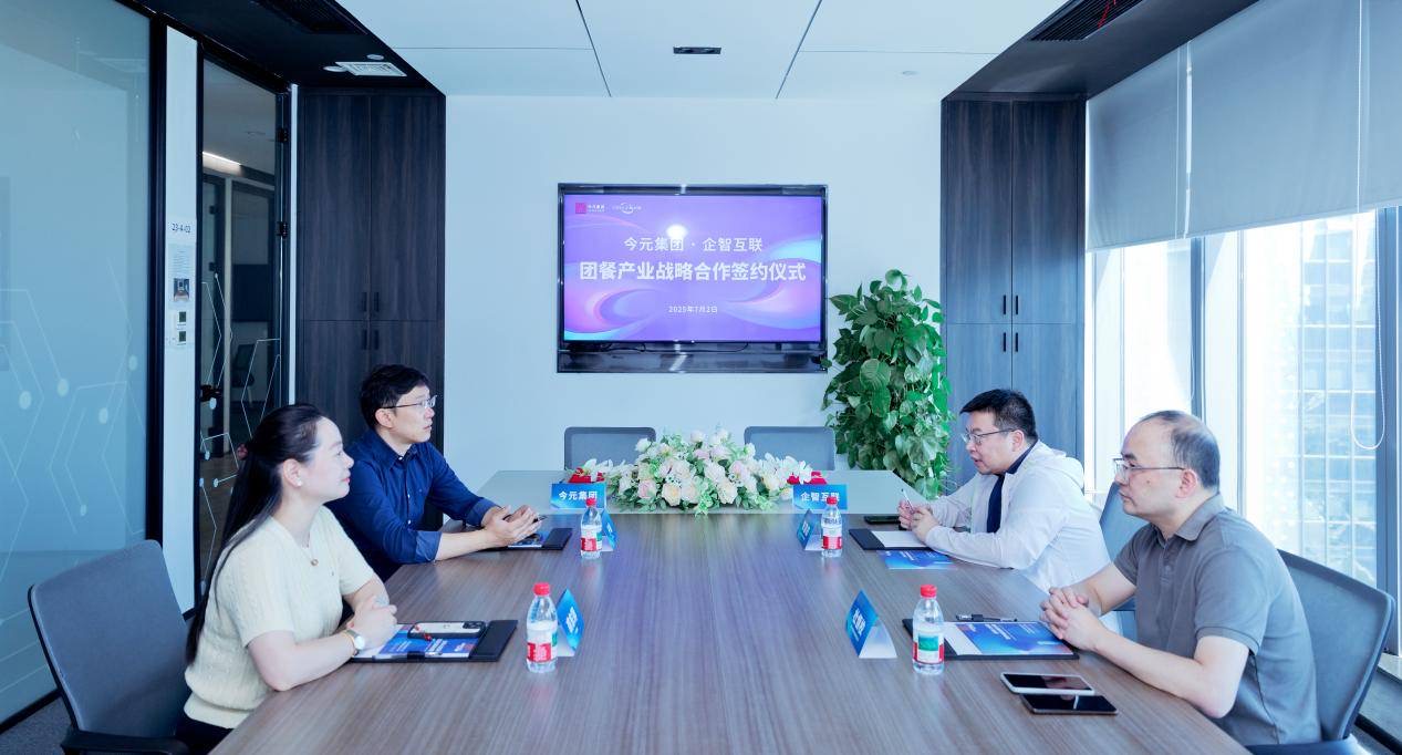 2025年7月2日,今元集團(tuán)與杭州企智互聯(lián)科技有限公司(以下簡(jiǎn)稱(chēng)“企智互聯(lián)”)簽署戰(zhàn)略合作協(xié)議,雙方將攜手進(jìn)軍團(tuán)餐產(chǎn)業(yè),為團(tuán)餐企業(yè)提供一站式人力資源解決方案。今元集團(tuán)合作發(fā)展副總裁于曦、今元集團(tuán)助理總裁裘東萍、企智互聯(lián)創(chuàng)始人兼董事長(zhǎng)陳國(guó)棟、企智互聯(lián)合伙人兼常務(wù)副總杜恒校,以及雙方有關(guān)負(fù)責(zé)人出席簽約儀式。