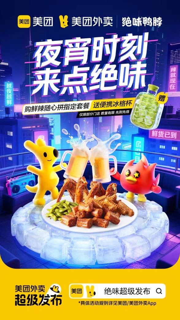 當夏夜的冰格杯在社交平臺折射出年輕人的分享欲,當鮮辣“隨心拼”成為夜宵場景的新晉頂流,絕味鴨脖與美團外賣聯(lián)手打造的“夜宵時刻,來點絕味”超級發(fā)布活動,為鹵味行業(yè)的年輕化破局提供了鮮活注腳。