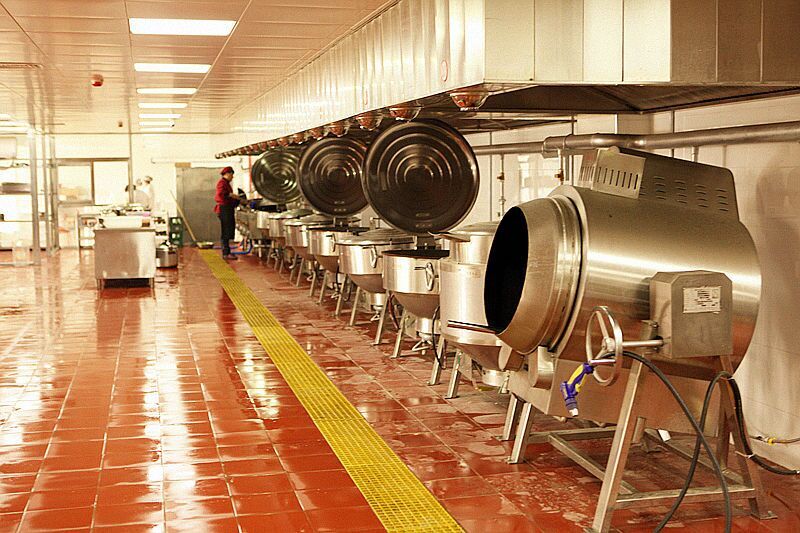他們擁有幾千平的中央廚房,有自己的檢測中心和養(yǎng)殖場場所。王德輝帶著我們參觀賣蝦的中央廚房,我們見到了自動洗蝦機、自動切片機、德國的自動化炒鍋,自動化能用最少的人力達到最高的生產力。賣蝦的中央廚房里并沒有多少人,但是生產力比傳統(tǒng)廚房強得多。因為,他們的整個過程都是機械化、自動化而不再是傳統(tǒng)的依靠人力去完成。
