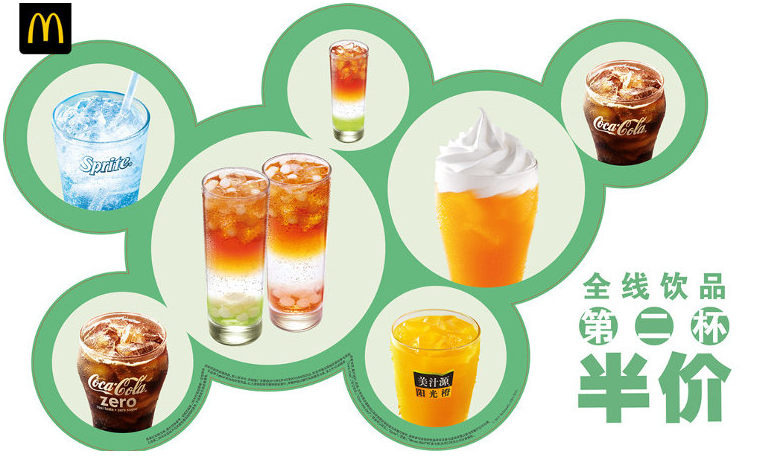 1、麥當(dāng)勞:第二杯半價(jià),重點(diǎn)是“第二杯”