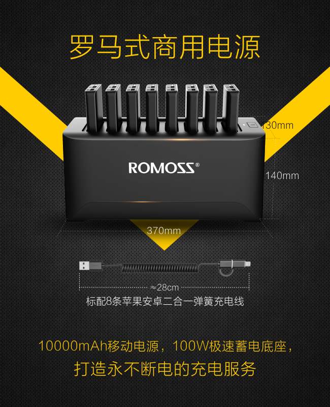 針對(duì)以上行業(yè)痛點(diǎn),近日羅馬仕創(chuàng)新研發(fā)出的一款商用移動(dòng)電源,通過“1個(gè)充電底座+8高品質(zhì)商用專屬移動(dòng)電源+8條二合一彈簧充電線”產(chǎn)品創(chuàng)新模式,充分滿足餐廳顧客的消費(fèi)需求,當(dāng)之無愧地成為了具備足夠“創(chuàng)新點(diǎn)”的產(chǎn)品。