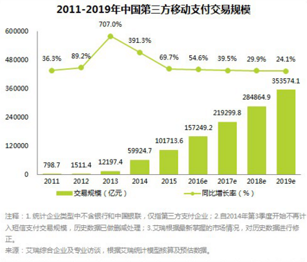 來自艾瑞咨詢的數據顯示,2015年中國第三方移動支付交易規(guī)模已經達到了101713.6億元,同比增長69.7%。預計2016年第三方移動支付交易規(guī)模將超過15億元。