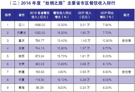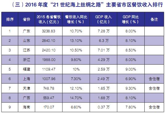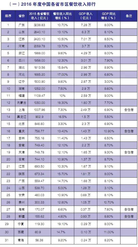 一、2016年度國內(nèi)各省市餐飲收入排行(2015財年)