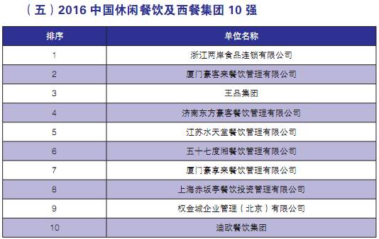 西餐及休閑餐飲10強營業(yè)額合計超過100億元,浙江兩岸食品連鎖有限公司、廈門豪客來餐飲管理有限公司、王品集團進入該業(yè)態(tài)前三位。