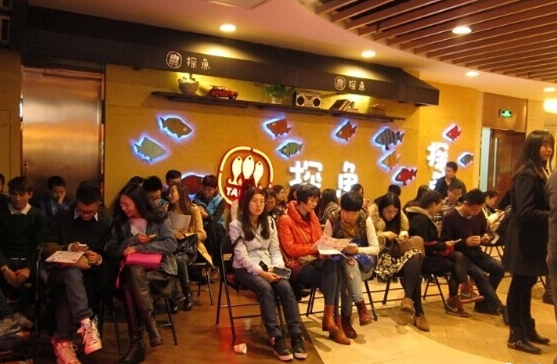 我們在上文中提到,快時尚餐廳常以低價菜品吸引客流,客流量越大越能保證餐廳的收益。然而,餐廳空間的容納量畢竟有限,因此我們常常會看到快時尚餐廳的門口大排長龍。為了避免等位顧客的流失,餐廳對等位區(qū)的“整形”也相當(dāng)重視,除了提供免費茶點等,幾乎每家快時尚餐廳都會引進等號軟件系統(tǒng),縮短顧客在店前等待的空白時間,提升服務(wù)滿意度。