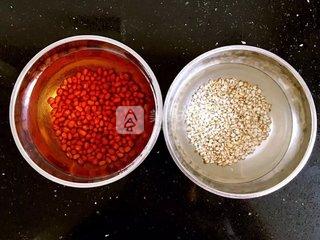 1、紅豆和薏米提前用水浸泡三個小時。