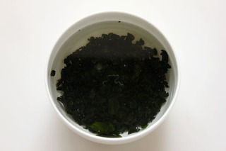 2、把裙帶菜提前泡入水中。