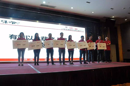 據(jù)不知道可不可靠大道消息,今年云味館除卻人人有?份的年終獎(jiǎng)以外,本周年會(huì)現(xiàn)場(chǎng)還要頒發(fā)近五十萬(wàn)人民幣、九十余項(xiàng)年度優(yōu)秀現(xiàn)金獎(jiǎng),同時(shí)在職滿五年的員工們每人將獲得九九純金金牌一枚!自律誠(chéng)信,激情創(chuàng)新,快樂成長(zhǎng),感恩分享!別問(wèn)我是誰(shuí),以人民的名義!