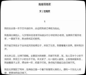 近日,一篇名為《我是范雨素》的文章刷爆朋友圈,閱讀量高達10萬+以上,引來各路媒體和網友褒貶不一的熱議。