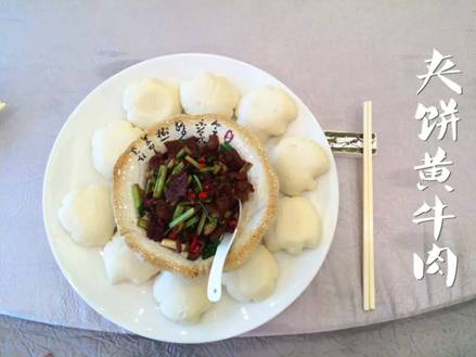 市面上的牛肉有很多種,論精品當(dāng)然是黃牛肉了。牛肉最怕炒老,難嚼。上桌的牛肉挺嫩的,用餅夾著吃倒是第一次,有點(diǎn)吃窩窩頭的感覺(jué),講究!比較飽肚。