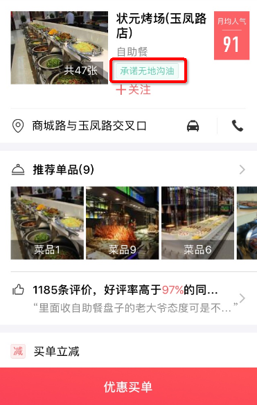公開資料顯示,口碑目前已經(jīng)接入全國300多個城市的250萬商家。今年五月,口碑發(fā)起了“無地溝油”行動。對于平臺上的餐飲商家,一旦承諾絕對不使用地溝油,其口碑在線店鋪會被打上“無地溝油”的標志并重點推薦。