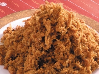 肉松或稱肉絨,通常是用豬的瘦肉或魚肉、雞肉除去水分后而制成的,肉松是我國著名的特產(chǎn),營養(yǎng)豐富,味美可口